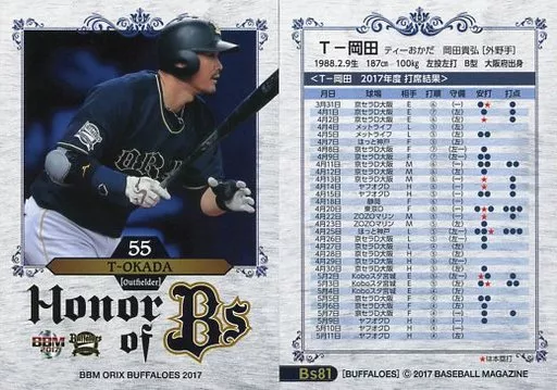 Japanese title: BBM/レギュラーカード/主力選手/BBM2017 オリックス・バファローズ Bs81[レギュラーカード]:T-岡田