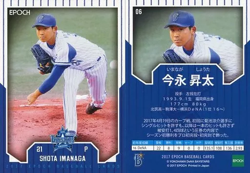 Japanese title: スポーツ/レギュラーカード/横浜DeNAベイスターズ/EPOCH ベースボールカード 2017 横浜DeNAベイスターズ 06 [レギュラーカード] : 今永昇太(投球後)(全身)(遠)