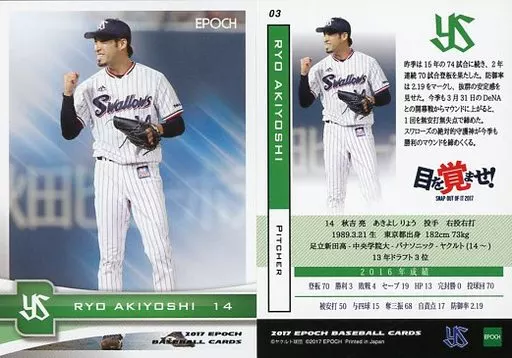 Sports / Regular Card / EPOCH Baseball Card 2017 Tokyo Yakult Swallows 03 [Regular Card] : Ryo Akiyoshi