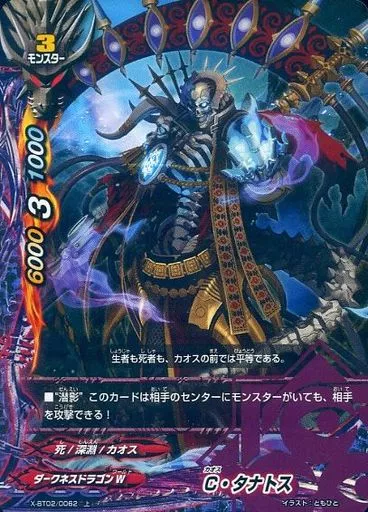 Japanese title: バディファイト/上/モンスター/ダークネスドラゴンW/[BF-X-BT02]バッツ ブースターパック第2弾「カオス・コントロール・クライシス」 X-BT02/0062[上]:C・タナトス