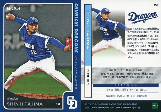 Sports / Regular Card / EPOCH Baseball Card 2017 Chunichi Dragons 03 [Regular Card] : Shinji Tajima (★)
