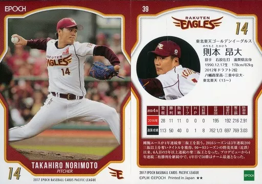 Sports / Regular Card / Tohoku Rakuten Golden Eagles / EPOCH Baseball Card 2017 Pacific League 39 [Regular Card] : Takahiro Norimoto (★ ★)
