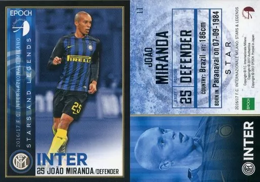 Japanese title: スポーツ/レギュラーカード/AUTHENTICA 2016/17 インテル・ミラノ STARS&LEGENDS 11 [レギュラーカード] : JOAO MIRANDA(右向き)