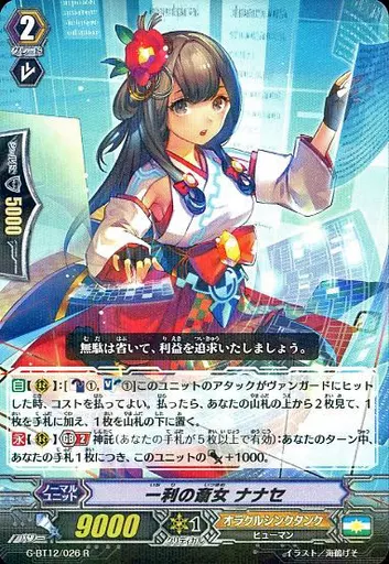 Japanese title: ヴァンガード/R/ノーマルユニット/オラクルシンクタンク/ヴァンガードG ブースターパック 第12弾「竜皇覚醒」 G-BT12/026[R]:一利の斎女 ナナセ