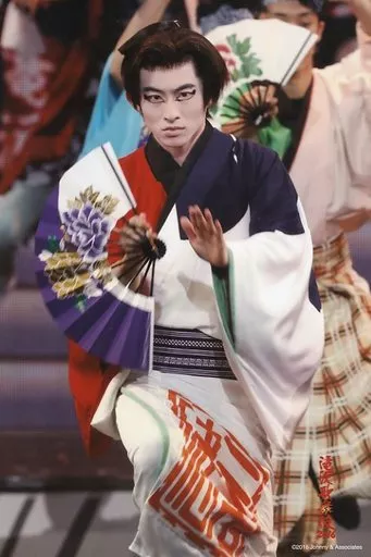 V6 / Ken Miyake / Live Photo / Knee-High / Costume Red / White / Purple / Kimono / Right Hand Fan / Left Hand Par / Crooked / 2L Size / Takizawa Kabuki 2016 Stage Photo 3