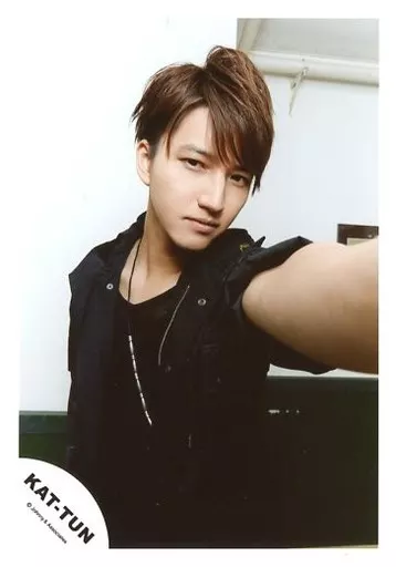 Japanese title: 生写真(ジャニーズ)/アイドル/KAT-TUN KAT-TUN/田口淳之介/上半身・衣装黒・左手前・左腕伸ばし・首傾げ・背景白黒/公式生写真