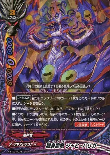 Japanese title: バディファイト/レア/モンスター/ダークネスドラゴンW/[BF-X-BT03]バッツ ブースターパック第3弾「逆天!雷帝軍!!」 X-BT03/0038[レア]:穢身魔竜 ジャヒ・バリガー(ガチレア仕様)