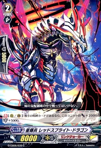 Japanese title: ヴァンガード/C/ノーマルユニット/リンクジョーカー/ヴァンガードG クランブースター 第6弾「混沌と救世の輪舞曲」 G-CB06/033[C]:星輝兵 レッドスプライト・ドラゴン