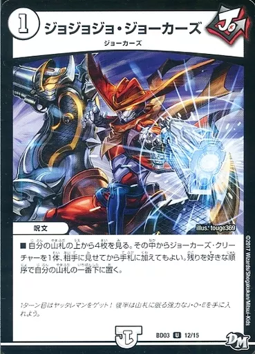 Japanese title: デュエルマスターズ/UC/ゼロ/[DMBD-03]超メガ盛りプレミアム7デッキ 集結!!炎のJ・O・Eカーズ BD03 12/15[UC]:ジョジョジョ・ジョーカーズ