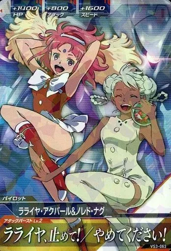Japanese title: ガンダムトライエイジ/R/パイロット/VS IGNITION 3弾 VS3-063[R]:ラライヤ・アクパール&ノレド・ナグ