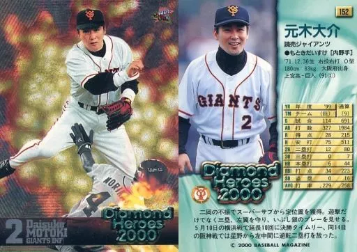 Japanese title: BBM/レギュラーカード/読売ジャイアンツ/BBM2000 Diamond Heroes(ダイヤモンドヒーローズ) 152[レギュラーカード]:元木大介