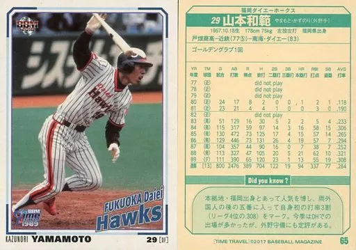 BBM / Regular Card / Fukuoka Daiei Hawks / BBM Time Travel 1989 65 [Regular Card] : Kazunori Yamamoto
