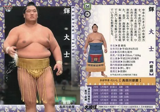 Japanese title: BBM/レギュラーカード/前頭/BBM2018 大相撲カード 34[レギュラーカード]:輝 大士