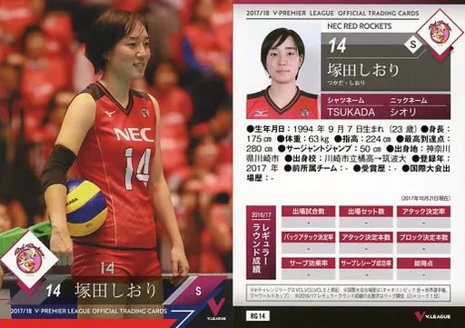Japanese title: スポーツ/レギュラーカード/2017/18 V・プレミアリーグ女子公式トレーディングカード RG 14 [レギュラーカード] : 塚田しおり