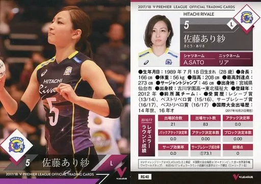 Japanese title: スポーツ/レギュラーカード/2017/18 V・プレミアリーグ女子公式トレーディングカード RG 40 [レギュラーカード] : 佐藤あり紗
