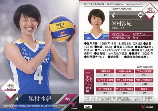 Japanese title: スポーツ/レギュラーカード/2017/18 V・プレミアリーグ女子公式トレーディングカード RG 85 [レギュラーカード] : 峯村沙紀
