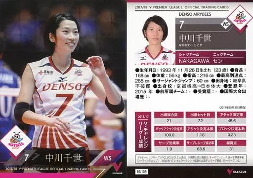 Japanese title: スポーツ/レギュラーカード/2017/18 V・プレミアリーグ女子公式トレーディングカード RG 109 [レギュラーカード] : 中川千世