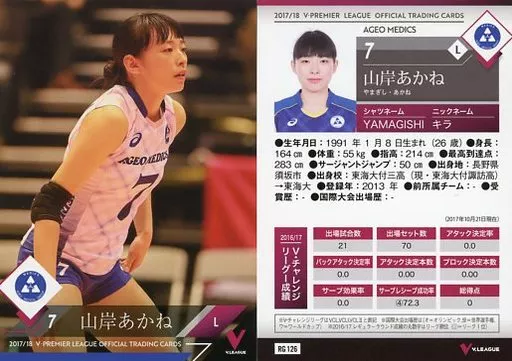 Japanese title: スポーツ/レギュラーカード/2017/18 V・プレミアリーグ女子公式トレーディングカード RG 126 [レギュラーカード] : 山岸あかね