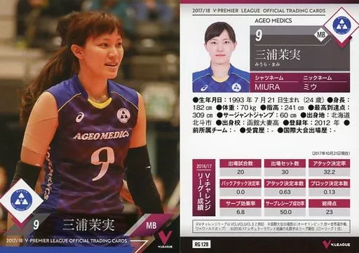 Japanese title: スポーツ/レギュラーカード/2017/18 V・プレミアリーグ女子公式トレーディングカード RG 128 [レギュラーカード] : 三浦茉実