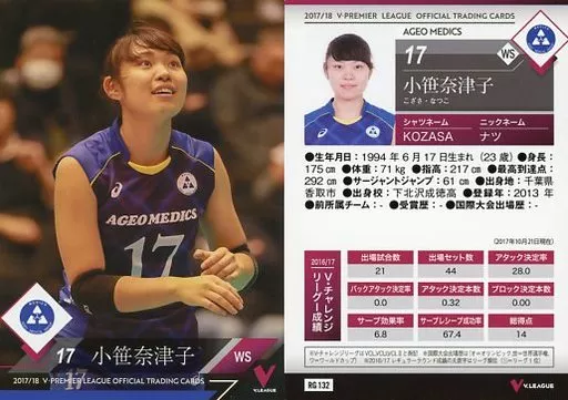 Japanese title: スポーツ/レギュラーカード/2017/18 V・プレミアリーグ女子公式トレーディングカード RG 132 [レギュラーカード] : 小笹奈津子
