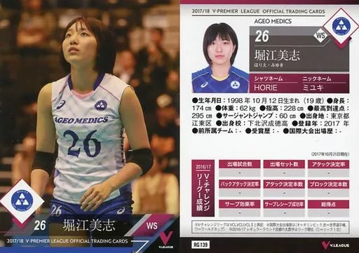 Japanese title: スポーツ/レギュラーカード/2017/18 V・プレミアリーグ女子公式トレーディングカード RG 139 [レギュラーカード] : 堀江美志