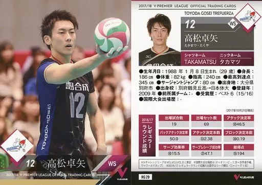 Japanese title: スポーツ/レギュラーカード/2017/18 V・プレミアリーグ男子公式トレーディングカード RG 29 [レギュラーカード] : 高松卓矢