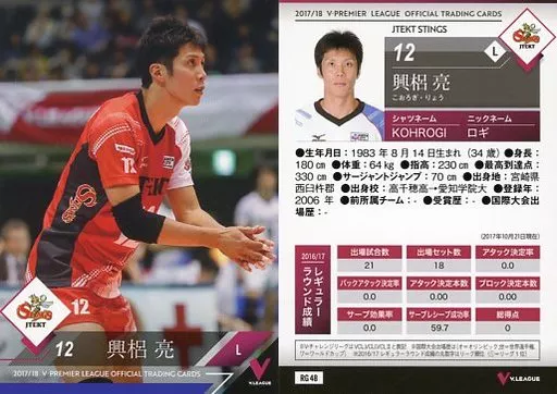 Japanese title: スポーツ/レギュラーカード/2017/18 V・プレミアリーグ男子公式トレーディングカード RG 48 [レギュラーカード] : 興梠亮