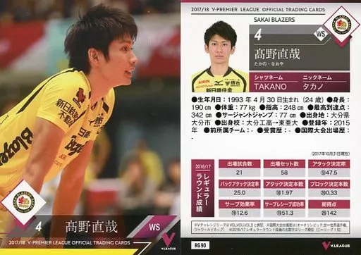Japanese title: スポーツ/レギュラーカード/2017/18 V・プレミアリーグ男子公式トレーディングカード RG 90 [レギュラーカード] : 高野直哉