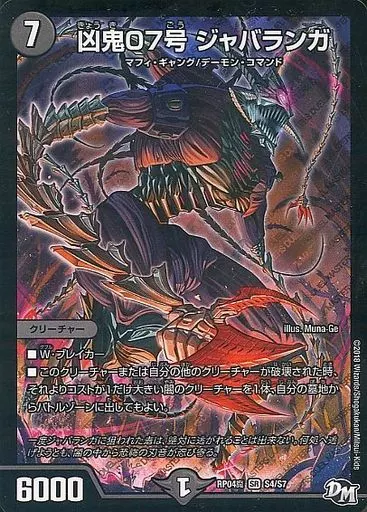Japanese title: デュエルマスターズ/SR/闇/[DMRP-04B]新4弾 誕ジョー! マスター・ドルスザク!! ~無月の魔凰~ S4/S7[SR]:凶鬼07号 ジャバランガ