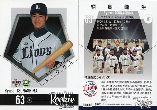 Japanese title: BBM/レギュラーカード/埼玉西武ライオンズ/BBM2018 ルーキーエディション 017[レギュラーカード]:綱島龍生