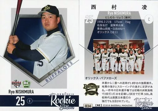 BBM / Regular Card / Orix Buffaloes / BBM2018 RookIe Edition 034 [Regular Card] : Ryo Nishimura