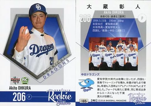 Japanese title: BBM/レギュラーカード/中日ドラゴンズ/BBM2018 ルーキーエディション 105 [レギュラーカード] : 大藏彰人