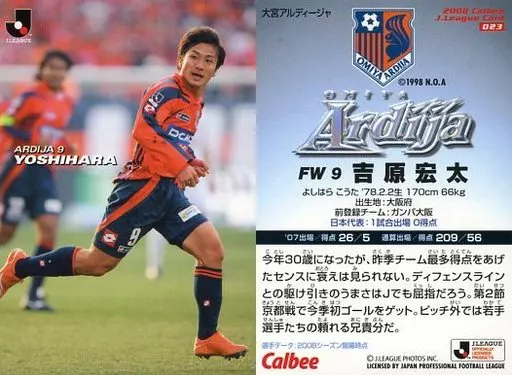 Japanese title: スポーツ/大宮アルディージャ/レギュラーカード/Jリーグチップス 2008 第1弾 023 [レギュラーカード] : 吉原 宏太