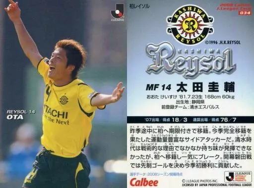 Japanese title: スポーツ/柏レイソル/レギュラーカード/Jリーグチップス 2008 第1弾 034 [レギュラーカード] : 太田 圭輔