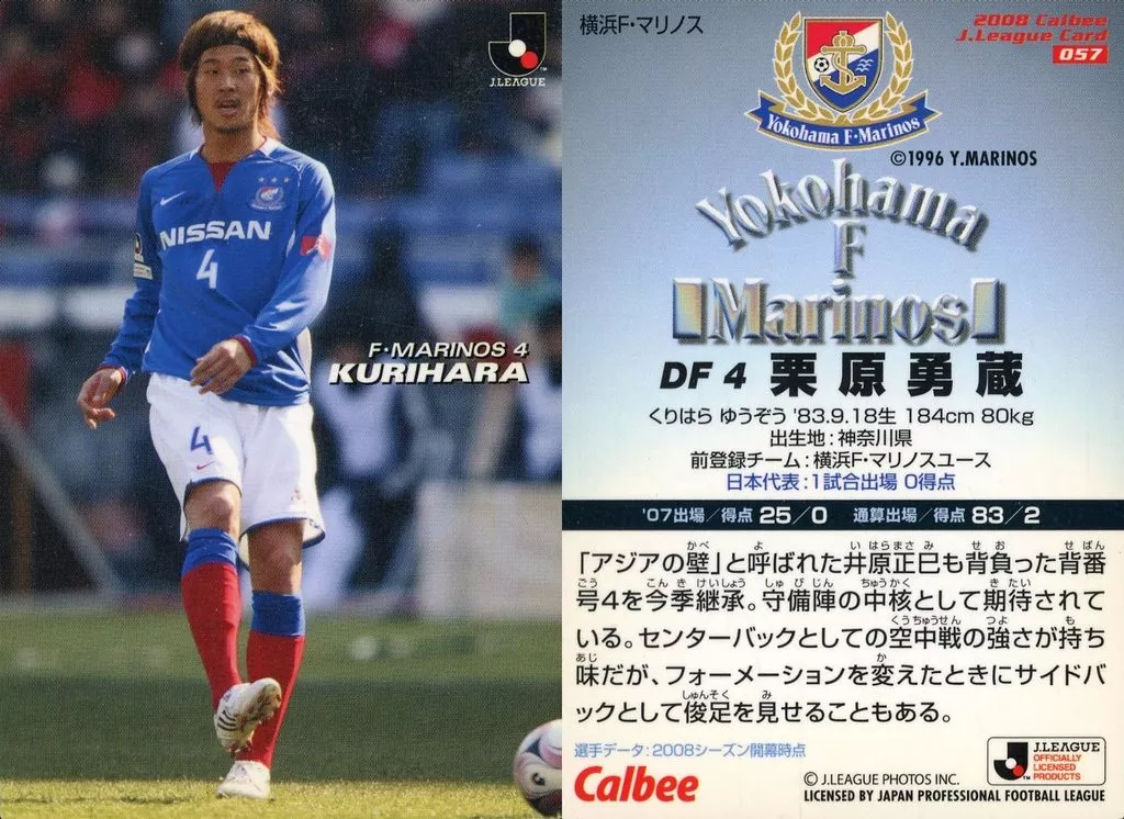 Sports / Yokohama F. Marinos / Regular Card / J-League Chips 2008 1 st 057 [Regular Card] : Yuzo Kurihara