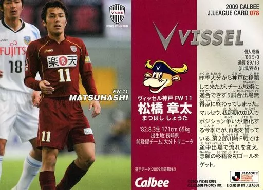 Japanese title: スポーツ/ヴィッセル神戸/レギュラーカード/Jリーグチップス 2009 第1弾 078 [レギュラーカード] : 松橋 章太