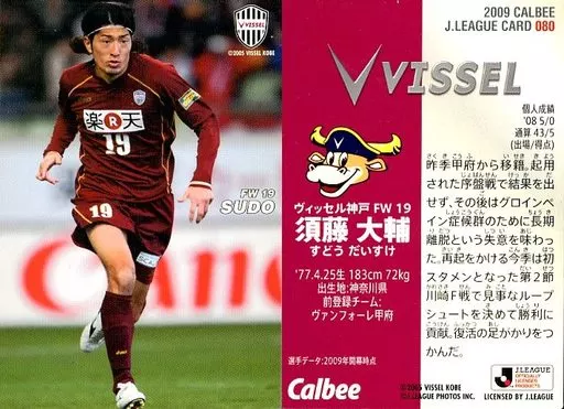 Japanese title: スポーツ/ヴィッセル神戸/レギュラーカード/Jリーグチップス 2009 第1弾 080 [レギュラーカード] : 須藤 大輔