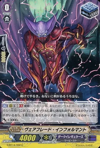 Japanese title: ヴァンガード/C/トリガーユニット/ダークイレギュラーズ/ヴァンガードG ブースターパック 第14弾「竜神烈伝」 G-BT14/092[C]:ヴェアフレード・インフォルマント