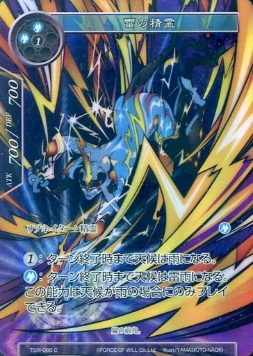 Japanese title: フォース オブ ウィル/C/リゾネイター/水/零夜クラスタ 第3弾ブースターパック「時環の魔女」 TSW-066[C]:(Foil)雷の精霊