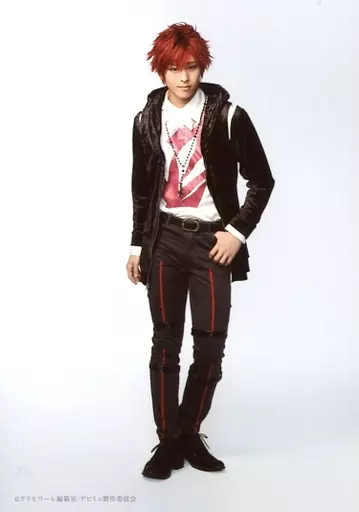 Japanese title: 生写真(男性)/俳優 高野洸(立華リンド)/全身・衣装黒・白・赤・左手腰・背景白・キャラクターショット/ミュージカル「Dance with Devils~Fermata(フェルマータ)~」ランダムブロマイド