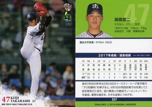 Japanese title: BBM/レギュラーカード/BBM2018 東京ヤクルトスワローズ S27 [レギュラーカード] : 高橋奎二