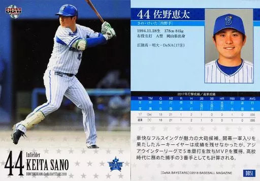 BBM / Regular Card / BBM2018 Yokohama DeNA BayStars DB51 [Regular Card] : Keita Sano