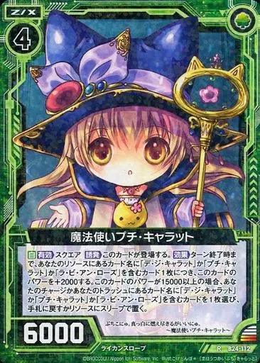 Japanese title: ゼクス/R/ゼクス/緑/第24弾『誓約舞装編 絆が導く未来』 B24-112[R]:魔法使いプチ・キャラット