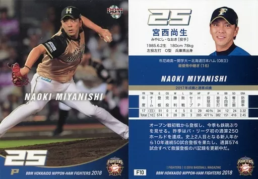 BBM / Regular Card / BBM2018 Hokkaido Nippon-Ham Fighters F10 [Regular Card] : Naoo Miyanishi