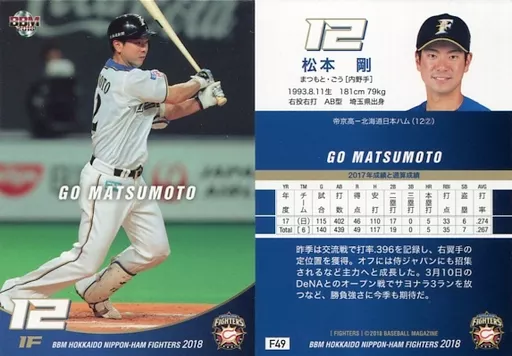 Japanese title: BBM/レギュラーカード/BBM2018 北海道日本ハムファイターズ F49[レギュラーカード]:松本剛