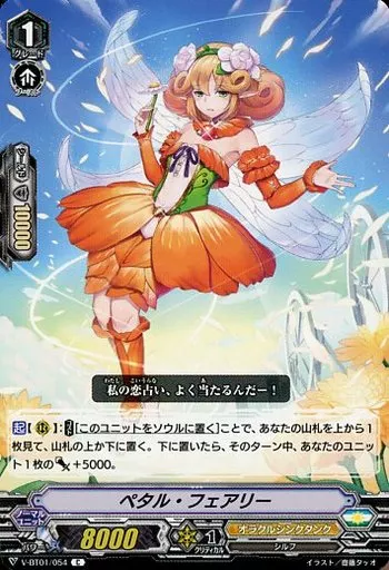Japanese title: ヴァンガード/C/ノーマルユニット/オラクルシンクタンク/ブースターパック第1弾「結成!チームQ4」 V-BT01/054[C]:ペタル・フェアリー