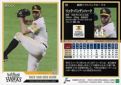 Sports / Regular Card / Fukuoka Soft Bank Hawks / EPOCH 2018 NPB Professional Baseball Card 12 [Regular Card] : Rick Vandenhark