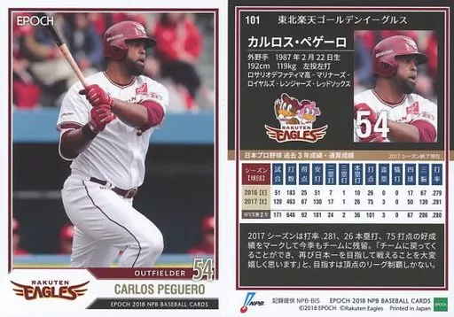 Japanese title: スポーツ/レギュラーカード/東北楽天ゴールデンイーグルス/EPOCH 2018 NPB プロ野球カード 101 [レギュラーカード] : カルロス・ペゲーロ