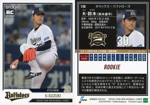 Japanese title: スポーツ/レギュラーカード/オリックス・バファローズ/EPOCH 2018 NPB プロ野球カード 138 [レギュラーカード] : K-鈴木