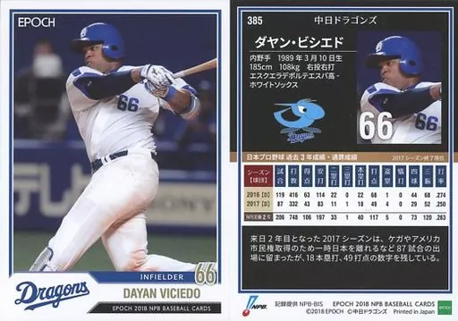 Japanese title: スポーツ/レギュラーカード/中日ドラゴンズ/EPOCH 2018 NPB プロ野球カード 385 [レギュラーカード] : ダヤン・ビシエド